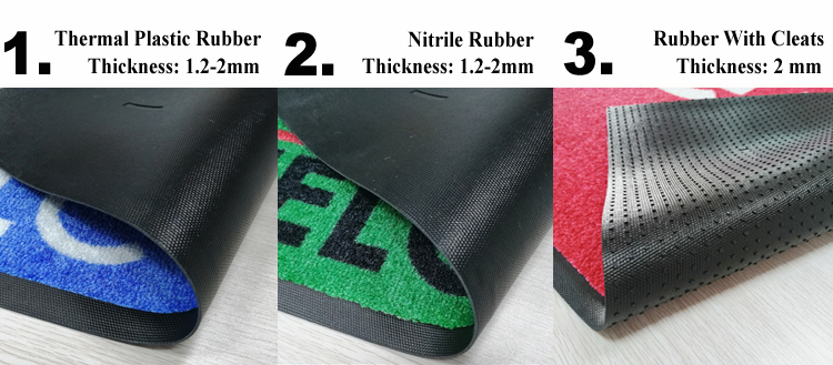 1. TPR底背,厚度1.2-2mm 2. 丁晴橡胶底背,厚度1.2-2mm 3. 防滑豆豆橡胶底,厚度2mm